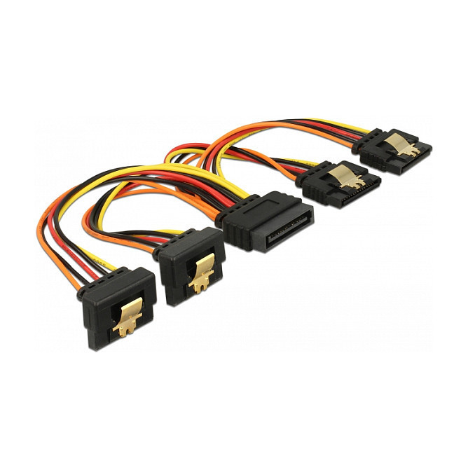 Delock Kabel SATA 15 Pin Strom Stecker mit Einrastfunktion > SATA 15 Pin Strom Buchse 2 x gerade / 1 x unten / 1 x oben 30 cm