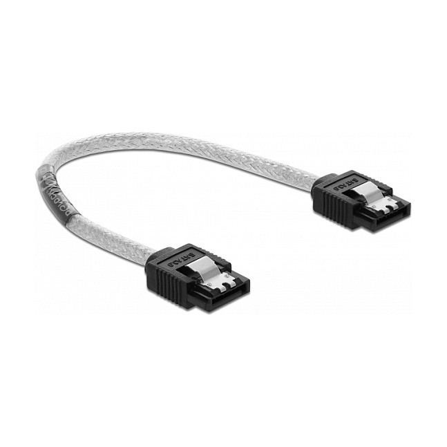 Delock SATA 6 Gb/s Kabel gerade auf unten gewinkelt 30 cm transparent