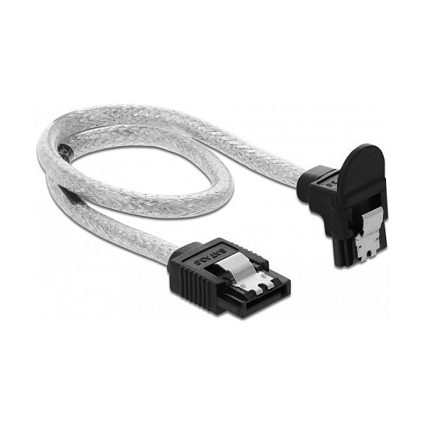 Delock SATA 6 Gb/s Kabel gerade auf unten gewinkelt 50 cm transparent