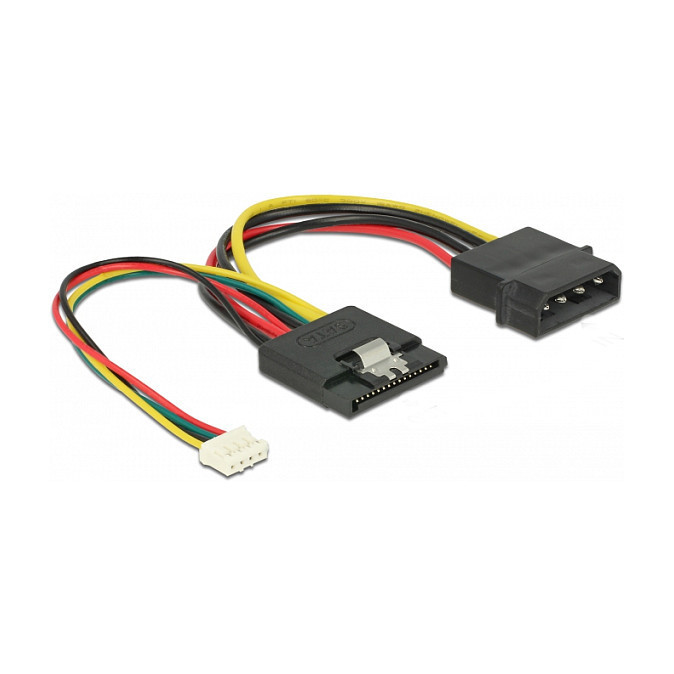 Delock Stromkabel SATA 15 Pin Buchse > Molex 4 Pin Stecker + 4 Pin Strombuchse
