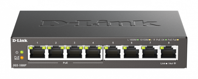 D-Link | 8-Port Gigabit PoE Switch (4xPoE) | DGS-1008P | Unmanaged | Desktop | Power supply type External