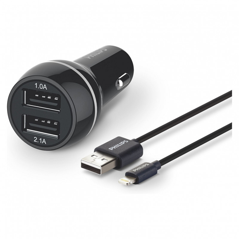 Philips Dual Car Charger 15W mit Apple Lightning Kabel MFI