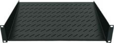 Digitus | Fixed Shelf for Racks | DN-19 TRAY-1-SW | Black | The shelves for fixed mounting can be installed easy on the two front 483 mm (19“) profile rails of your 483 mm (19“) network- or server cabinet. Due to their stable, perforated steel sheet with a high load capacity, they are the optimal surface for components which are not 483 mm (19”) suitable