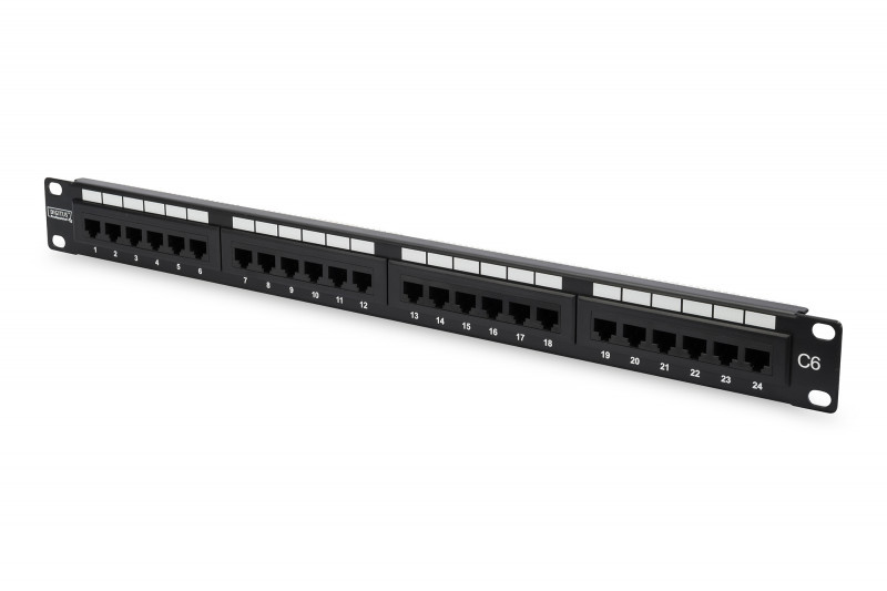 Digitus | Patch Panel | DN-91624U | Black | Category: CAT 6; Ports: 24 x RJ45; Retention strength: 7.7 kg; Insertion force: 30N max | 48.2 x 4.4 x 10.9 cm