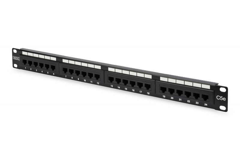 Digitus | Patch Panel | DN-91524U | Black | Category: CAT 5e; Ports: 24 x RJ45; Retention strength: 7.7 kg; Insertion force: 30N max | 48.2 x 4.4 x 10.9 cm