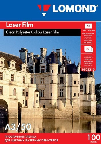 Poliesterio plėvelė Lomond PET Film b/w & color lazeriniams spausdintuvams Skaidri A3, 50 lapų