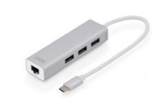 Digitus USB (3.1) type-C 3 port USB2.0 HUB + Gigabit LAN adapter, DA-70255