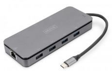 DIGITUS Universal Docking Station USB (3.0) type-C to 9 Port 2x video, 2x USB-C, 2x USB3.0, RJ45,2x card reader , DA-70865