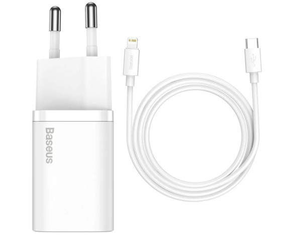 Baseus Super Si Quick Charger 1C 20W with USB-C cable for Lightning 1m White