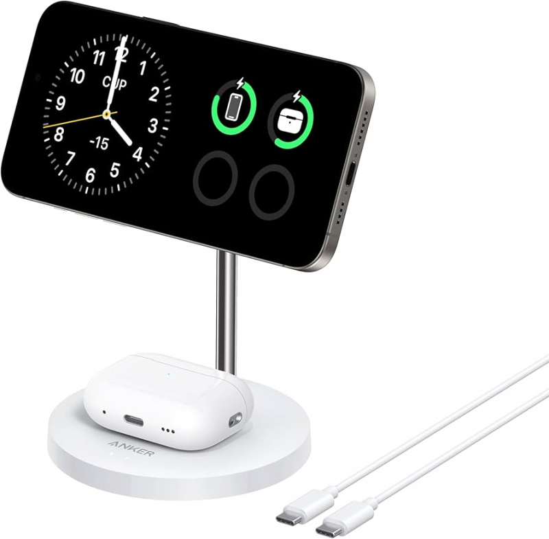 ANKER MagGo Wireless Charging Stand Qi2 15W MagSafe um 360 drehbar fr iphone 12 und hher weiss