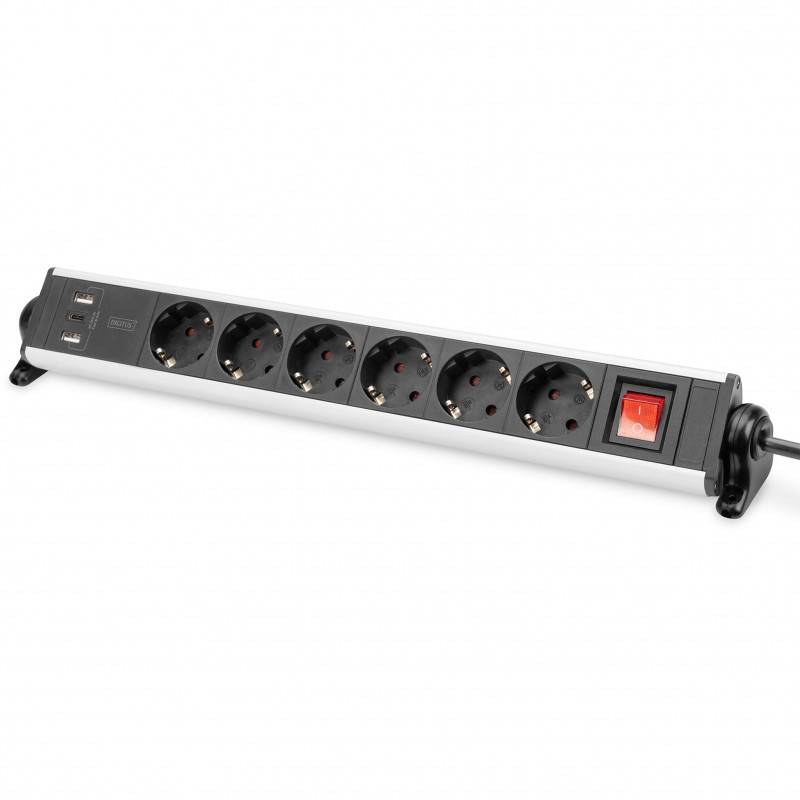 Digitus 6-Fach Steckdosenleiste mit 2xUSB-A; 1xUSB-C und Schalter Schwarz/Silver
