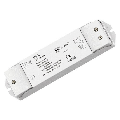 V3-L nuolatinės įtampos RGB valdiklis, 12-48V, 3x 6A, Push Dimm