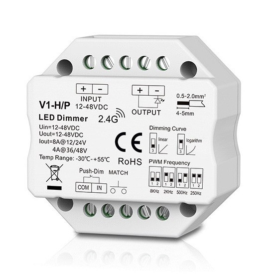 V1-L(WT) nuolatinės įtampos valdiklis 12-48V, 1x15A, Push-Dimm, Tuya, Wi-Fi