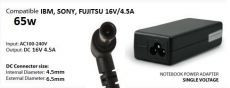 Notebook Power Adapter IBM/SONY/Fujitsu 16V, 4.5A 4.5/6.5mm 65W HTL, NBP05