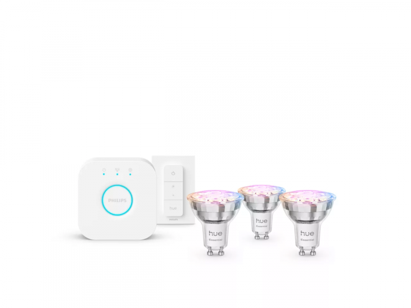 Philips Hue Starter set: 3 GU10 bulbs, dimmer switch, Hue Bridge Pro | GU10 | Zigbee, Wi-Fi, Bluetooth