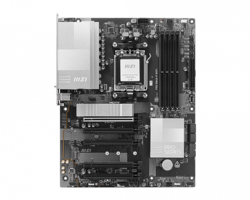 MSI PRO B840-P WIFI | Processor family AMD | Processor socket AM5 | DDR5 | Supported hard disk drive interfaces SATA, M.2 | Number of SATA connectors 4