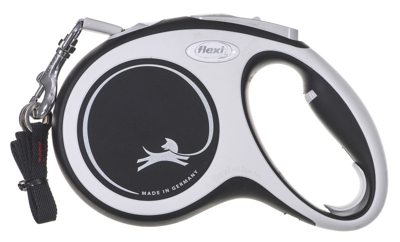 Flexi New COMFORT 8 m Juoda, Pilka Šuo Susitraukiantis pavadėlis