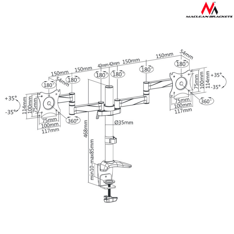 Maclean trumpo nuotolio projektoriaus sieninis laikiklis, maks. 15 kg, MC-945