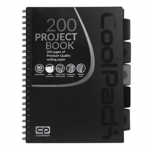 Sąsiuvinis su spirale CoolPack, A5, 200 puslapių, langeliais, juodos spalvos
