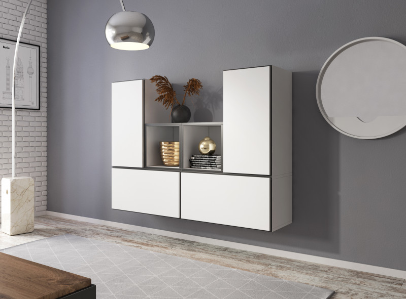 Cama ROCO7 BI/BI/CZ svetainės sekcija Spinta daiktams ir garso / vaizdo technikai laikyti