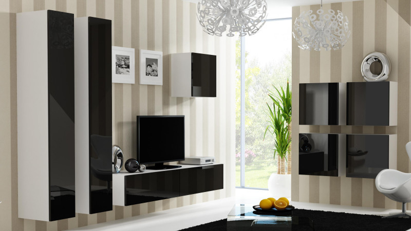 Cama VIGO NEW2 CZ/BI svetainės sekcija Spinta daiktams ir garso / vaizdo technikai laikyti