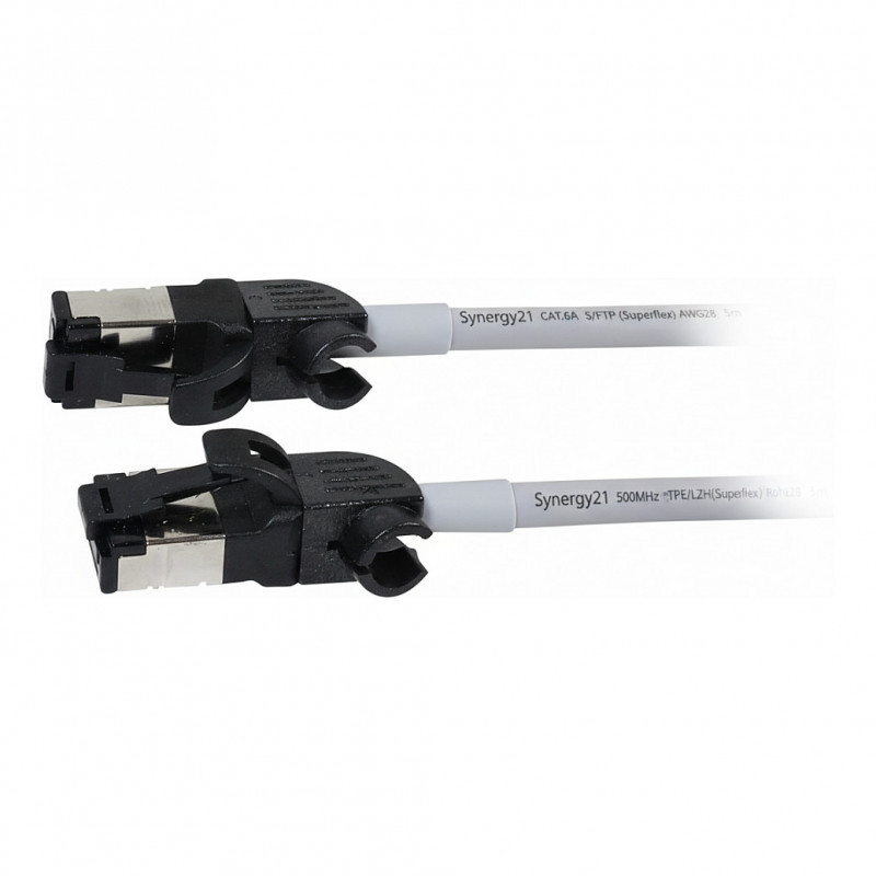 Synergy21 Patchkabel RJ45, CAT6A 500Mhz, 5m, grau, S/FTP, slimline rund d=4,5mm, TPE/LSZH(Superflex), AWG28, mit CAT7 Rohk., drehbarer Stecker,