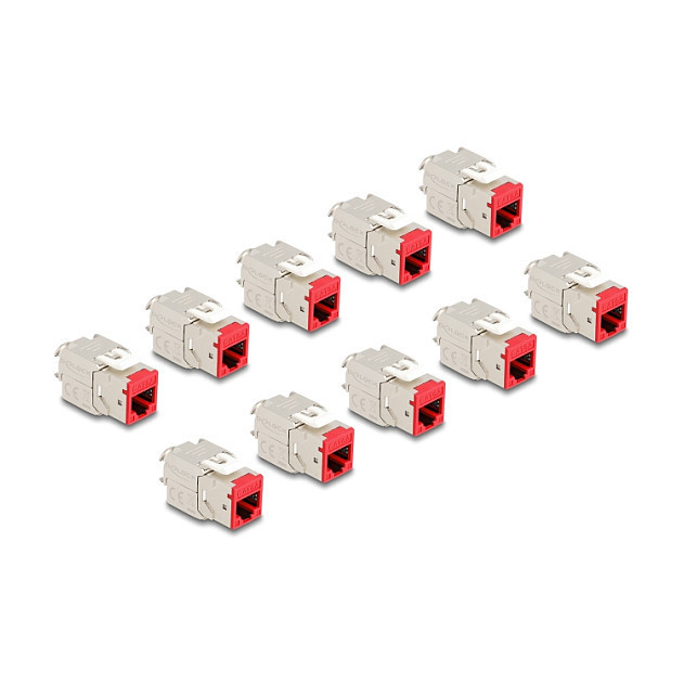 Delock Keystone Modul RJ45 Buchse zu LSA Cat.6A werkzeugfrei mit roter Staubschutzkappe