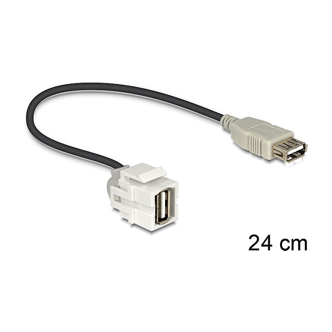 DELOCK Keystone Modul USB 2.0 A Buchse 250 > USB 2.0 A Buchse mit Kabel weiss