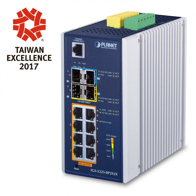 PLANET Industrial L2+ 8-Port 10/100/1000T 802.3at PoE +