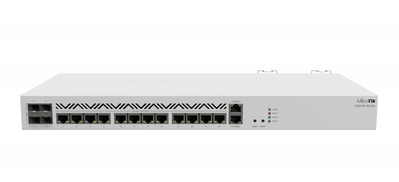 Mikrotik Cloud Core Router CCR2116-12G-4S+, 16-CORE 2 GHZ ARM CPU, 16 GB DDR4 RAM, 4x10G SFP+ ports, 13xGigabit LAN ports, 1x RJ45 Serial port, 1x M.2 slots, 16 core CPU, 16 GB RAM, Dual redundant power supply, RouterOS L6 | Cloud Core Router | CCR2116-12G-4S+ | Ethernet LAN (RJ-45) ports 13 | 12 month(s)
