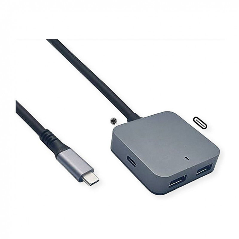 VALUE USB 3.2 Gen 2 Hub, 4 Ports (2x USB-A + 2x USB-C), mit Verlngerungskabel, 3 m