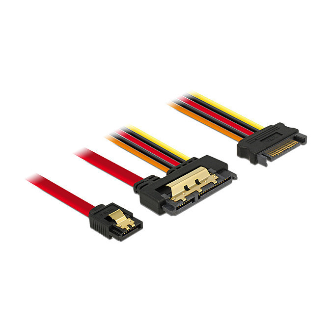 Delock Kabel SATA 6 Gb/s 7 Pin Buchse + SATA 15 Pin Strom Stecker > SATA 22 Pin Buchse unten gewinkelt Metall 30 cm