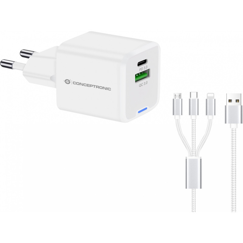 CONCEPTRONIC Ladegerät 2Port GaN 3-in-1 33WPD3.0/PPS ws