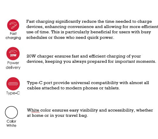 SEEK TOTI 20W Type-C PD Portable Wall Fast Charger, White
