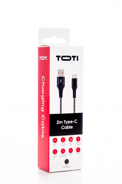 SEEK TOTI USB A to Micro USB, 2m Braided cable 2A, Black