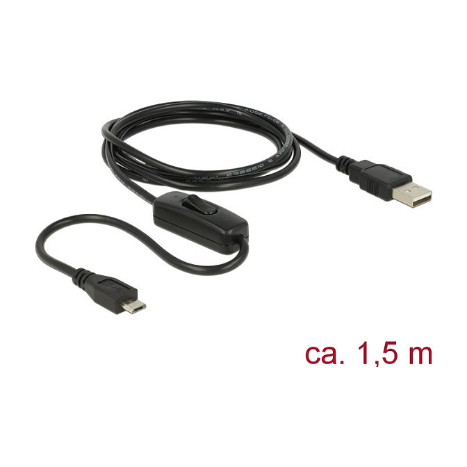 Delock Ladekabel USB 2.0 Typ-A Stecker > USB 2.0 Micro-B Stecker mit Schalter für Raspberry Pi 1,5 m