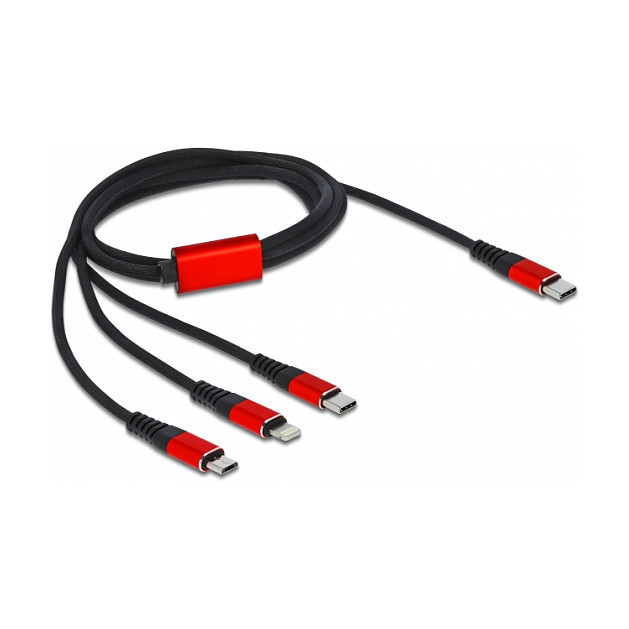 Delock USB Ladekabel 3 in 1 USB Type-C™ zu Lightning™ / Micro USB / USB Type-C™ 1 m schwarz / rot