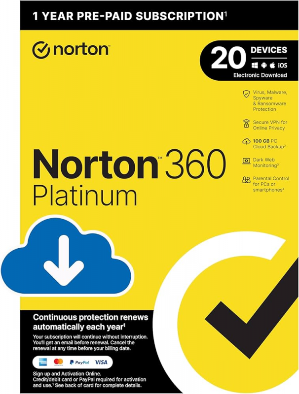 NORTON PLATINIUM | Multiple layers of protection for device and online privacy | 1 year(s) | License quantity 1 user(s) | 20 device