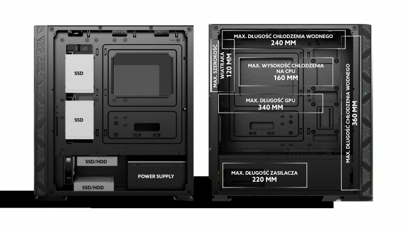 Gembird ATX Fornax 2000 RGB dėklas, RGB foninis apšvietimas, juoda spalva