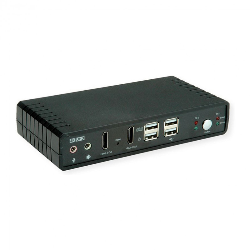 ROLINE KVM-Audio-Switch Dual Head HDMI 4K60, 1 User - 2 PC