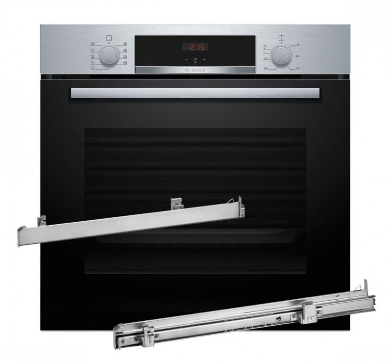 BOSCH HBA514BS3 orkaitė + BOSCH HEZ538000 vieno lygio teleskopinės bėgelių sistemos