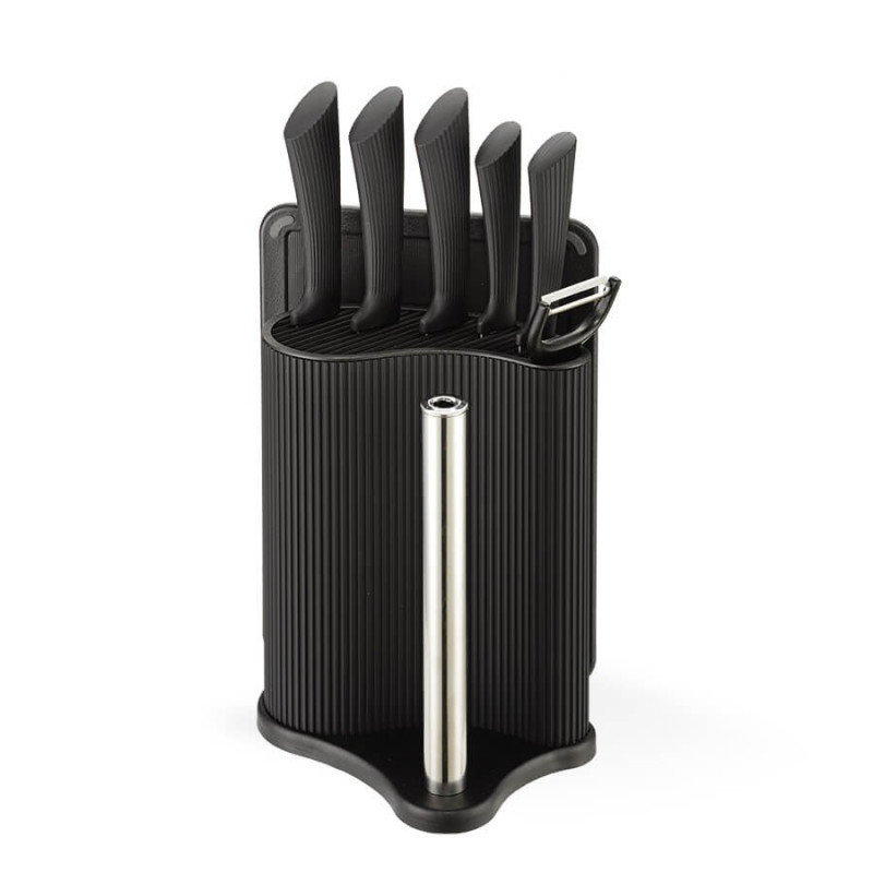 Maestro MR-1412-BLACK Peilių rinkinys su blokeliu + pjaustymo lentos rinkinys Juoda