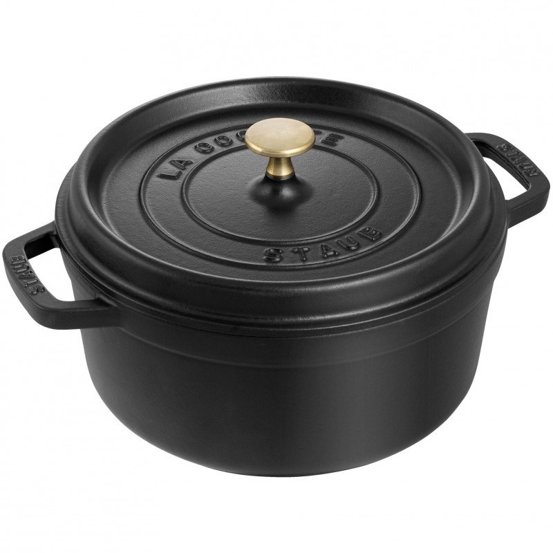 Staub La Cocotte 20 cm apvalus juodos spalvos ketaus puodas