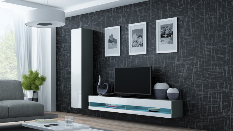 Cama VIGO NEW9 SZ/BI svetainės sekcija Spinta daiktams ir garso / vaizdo technikai laikyti