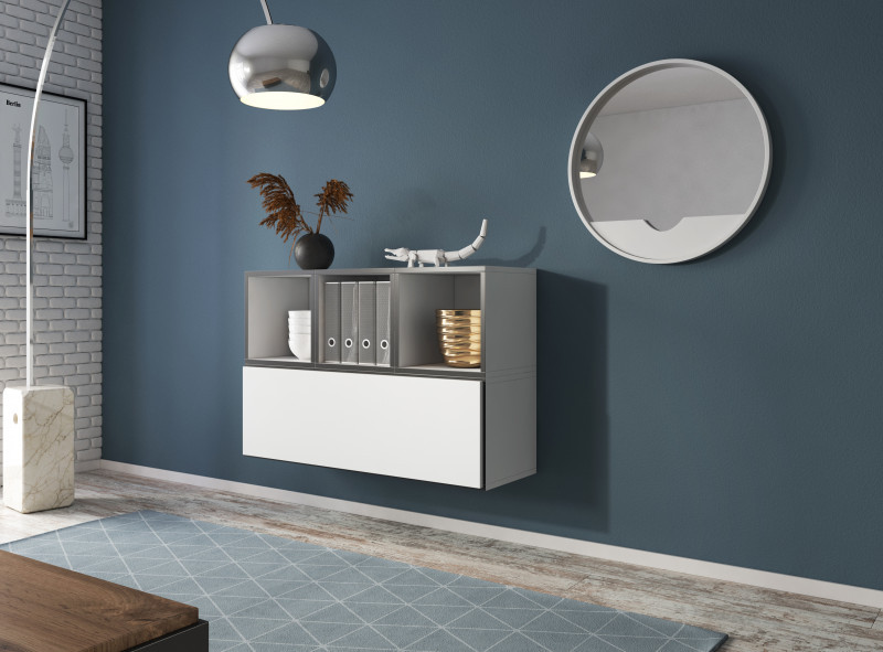 SOHO 4 komplektas (RTV180 spintelė + 2x S1 spintelė + lentynos) Baltas/pilkas blizgesys