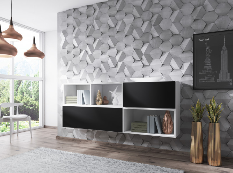 SOHO 4 komplektas (RTV180 spintelė + 2x S1 spintelė + lentynos) Juodas/baltas blizgesys