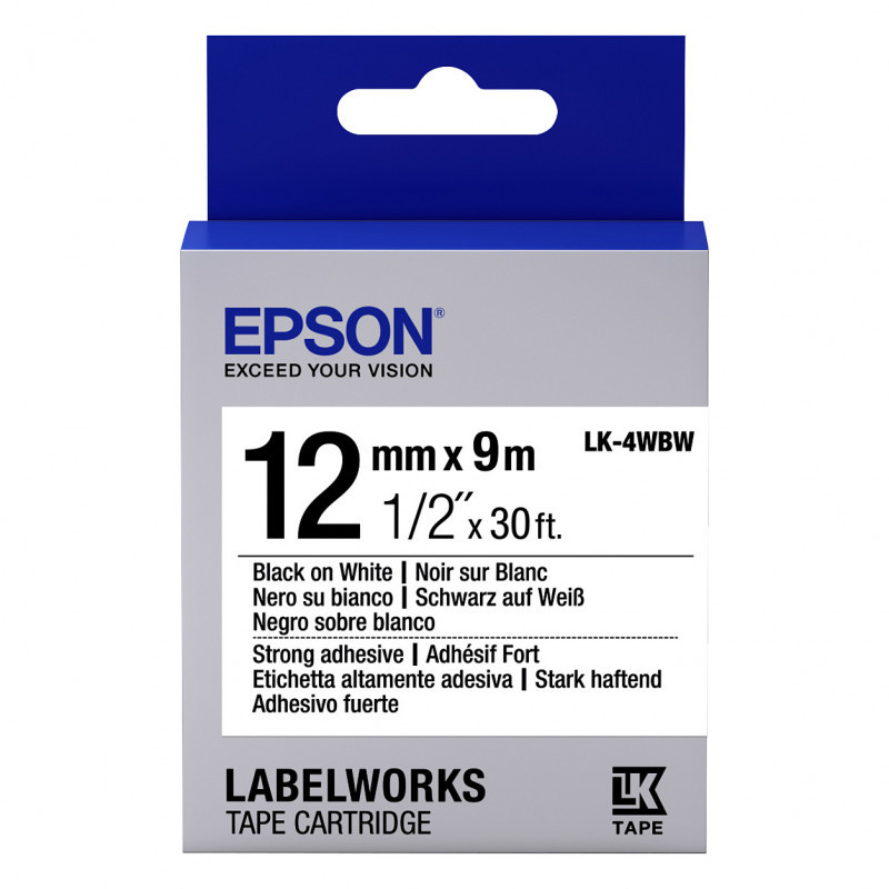 Epson LabelWorks LK-4WBW - Stark klebend - Schwarz auf Weiß - Rolle (1,2 cm x 9 m)