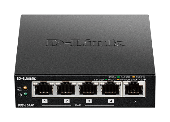 D-Link | Switch | DGS-1005P | Unmanaged | Desktop | Gigabit Ethernet (copper) ports quantity 5 | Power over Ethernet (PoE) ports quantity 4 | Power supply type External