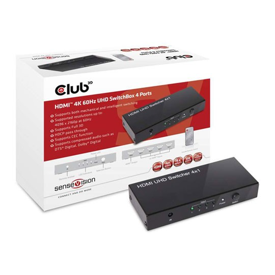 Club3D HDMI Switchbox 4 Eingänge -> 1 Ausgang 4K60Hz UHD retail