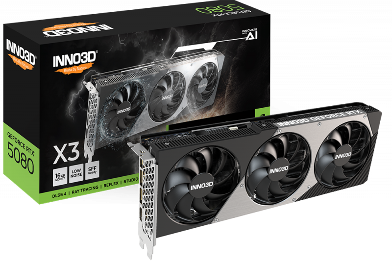 INNO3D NVIDIA GEFORCE RTX 5080 X3 OC 16GB GDDR7 256bit, 2460 MHz / 30Gbps, 3x DP, 1x HDMI, 3 fan, 2,5 slot